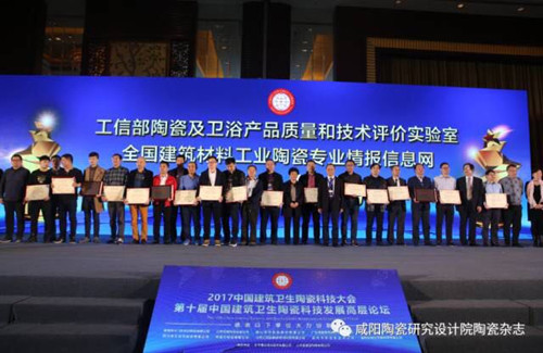 論壇大會上,還進行了頒獎活動。工信部陶瓷及衛浴產品質量和技術評價實驗室、全國建筑材料工業陶瓷專業情報信息網聯合主辦了2017年度建筑衛生陶瓷行業“質量突出貢獻獎”、“創新產品獎”、“綠色陶瓷磚”、“綠色衛生陶瓷”、“智能產品獎”、“綠色節能窯爐”、“智能創新獎”、 “清潔生產優秀企業獎”,“2017年度最具影響力色釉料品牌”,“2017中國建筑衛生陶瓷裝備科技創新獎”,“2017中國建筑陶瓷年度最佳產品設計獎”,“ 2017中國衛生陶瓷年度最佳產品設計獎”的評價活動,大會為獲獎企業隆重頒獎。同時由國家陶瓷及水暖衛浴產品質量監督檢驗中心聯合全國建筑材料工業陶瓷專業情報信息網共同組織開展的建筑衛生陶瓷產品質量測評活動“年度精英杯”獲獎企業也受到表彰。常務副院長李轉宣布獲獎企業名單并主持頒獎活動。